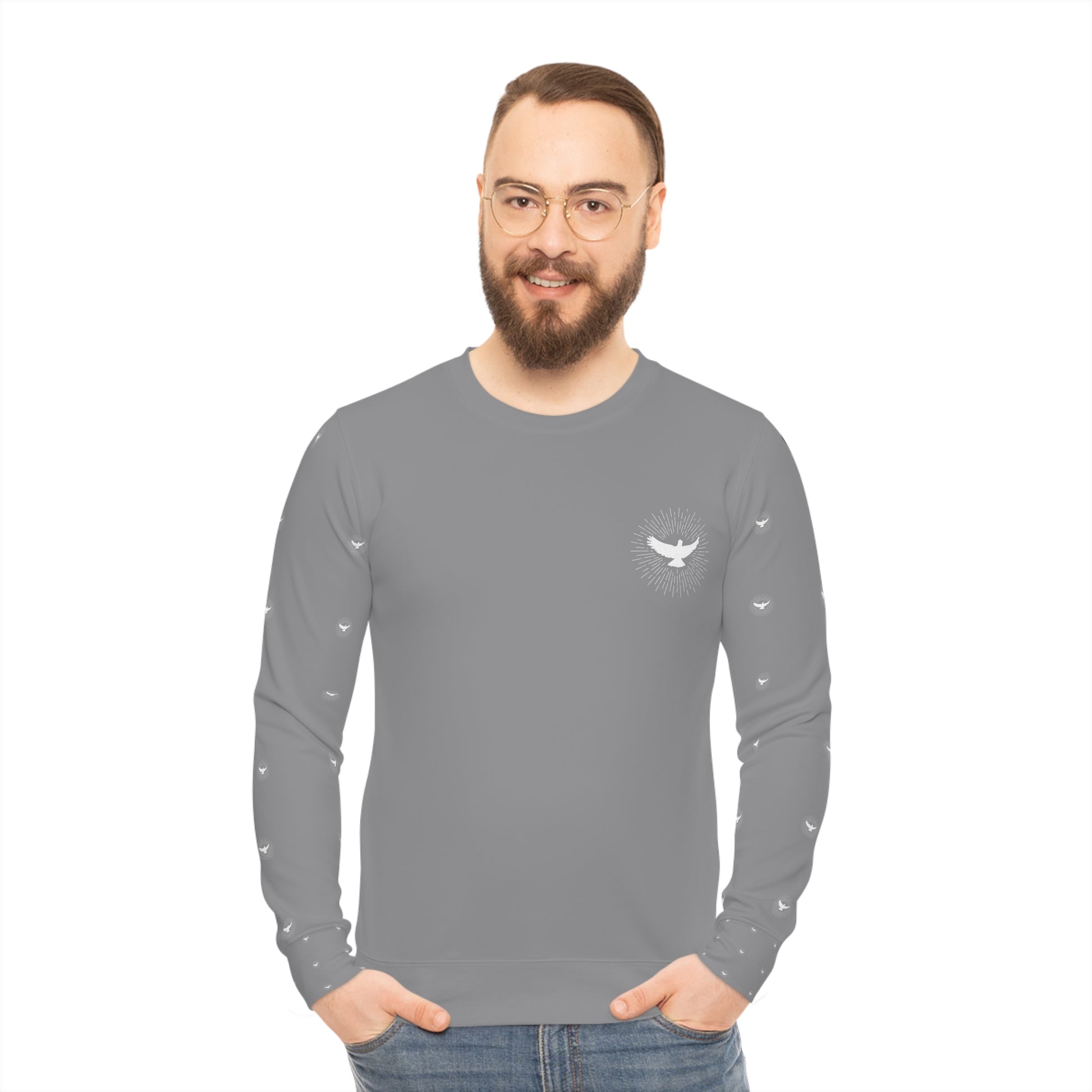 Stay cozy and stylish with this lightweight sweatshirt featuring a flying dove design on the sleeves. Perfect for a casual and peaceful vibe, this sweatshirt is ideal for bird lovers or those looking for a unique wardrobe piece. Great for wearing during holidays like Christmas or Easter.